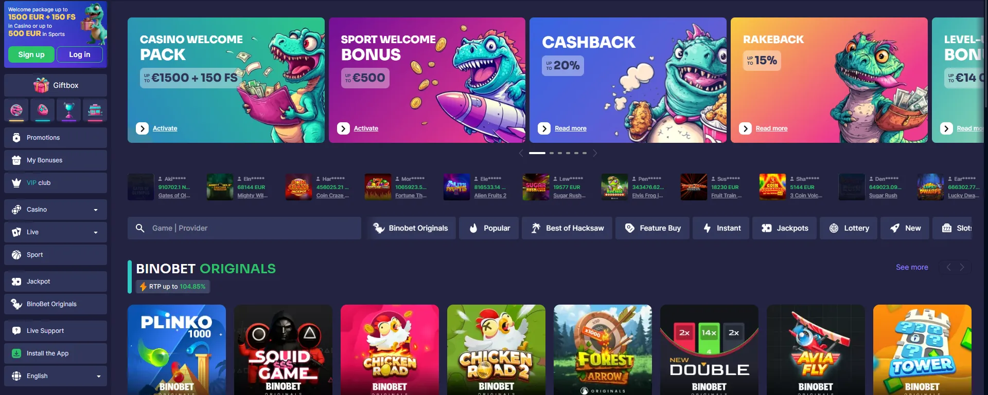 • Binobet Originals: Exclusieve spellen die alleen op dit platform beschikbaar zijn.